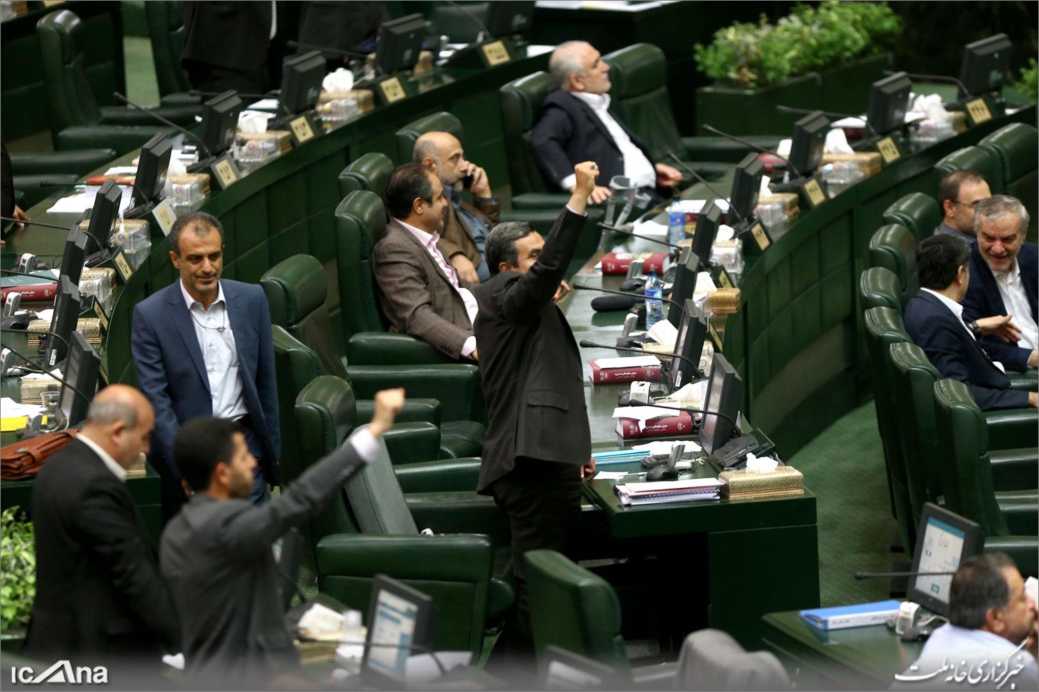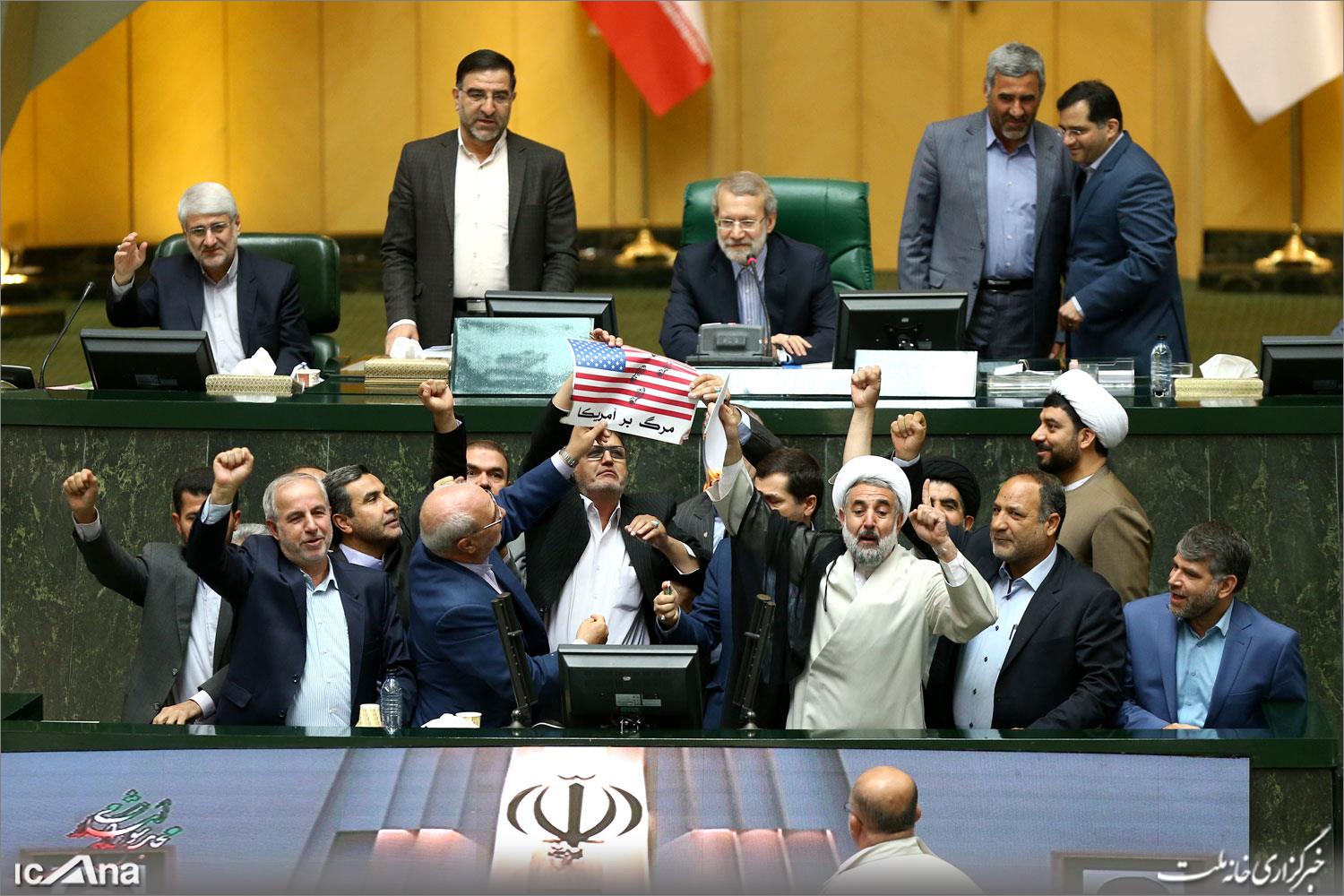 بالصور.. اجتماع مجلس الشورى الاسلاميعدداً من نواب مجلس الشورى الاسلامي قاموا في بداية اجتماعهم اليوم وعقب انسحاب امريكا من الاتفاق النووي، بإحراق نص الاتفاق النووي داخل المجلس. |