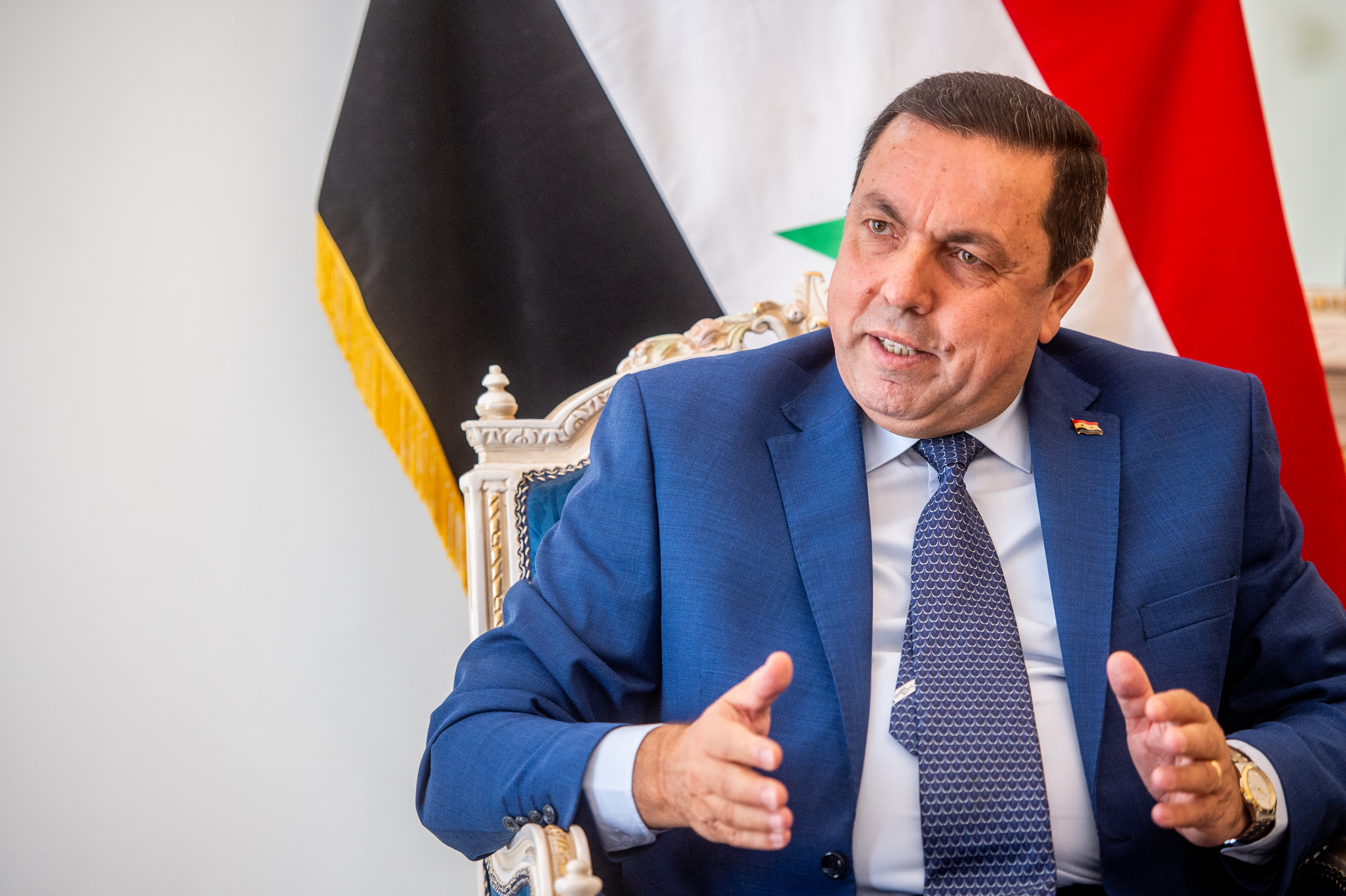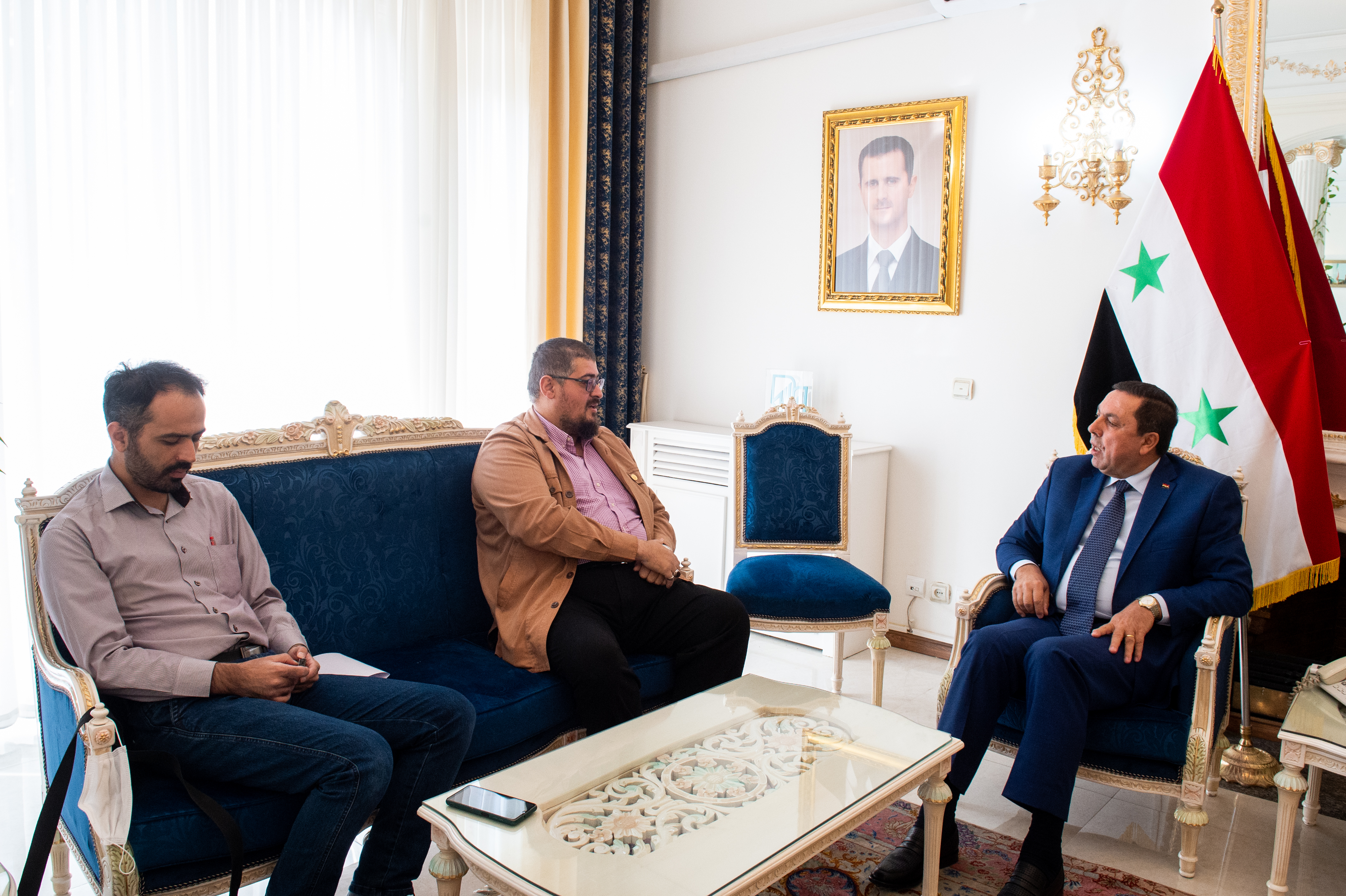 حوار السفير السوري في طهران مع صحيفة الوفاق (تقرير مُصوَّر)أجرت صحيفة "الوفاق" حواراً مطوّلاً مع سفير الجمهورية العربية السورية لدى الجمهورية الإسلامية الإيرانية الدكتور شفيق ديوب، وهو الأول مع الصحيفة منذ تولّيه المنصب، تناول خلاله تطورات عدّة على رأسها العلاقات بين سوريا وإيران وآفاق التعاون الثنائي بين البلدين "المتنامي مؤخراً" بوتيرة متسارعة، لاسيما في الجانب الإقتصادي من ناحية إعادة إعمار سوريا "القائم حالياً وإن كان بخطوات بطيئة"، لتليها مواضيع العلاقات الثقافية والسياسية "العميقة". |